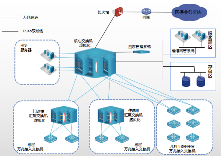 醫院占地面積20000平方米,業務用房34000多平方米,現在有門診樓,住院部,兒科樓等對醫院內網進行升級改造項目。