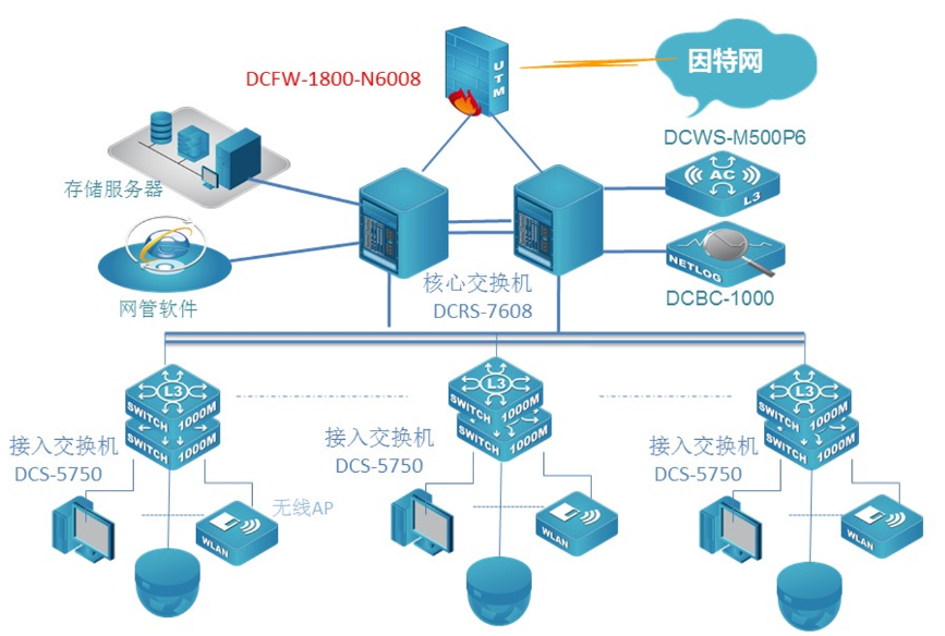 中國江蘇白馬農(nóng)業(yè)會展中心數(shù)據(jù)網(wǎng)核心采用兩臺bti必一体育(b-sports)新一代全分布式架構(gòu)的核心路由交換機DCRS-7608E,順利獲得VSF功能實現(xiàn)核心冗余和負(fù)載分?jǐn)偅辉撛O(shè)備具備強大的業(yè)務(wù)自適應(yīng)能力,支持網(wǎng)絡(luò)平滑升級和策略靈活調(diào)度,實現(xiàn)業(yè)務(wù)快速部署,從而構(gòu)建業(yè)務(wù)定義的網(wǎng)絡(luò)。網(wǎng)絡(luò)出口采用具有高度集成化的多核安全防火墻,給予包括路由器,防火墻,VPN網(wǎng)關(guān),等功能在內(nèi)的一體化設(shè)備,該設(shè)備8Gbps的吞吐量完全滿足了園區(qū)網(wǎng)對出口的要求。接入交換機采用bti必一体育(b-sports)全千兆24口接入交換機DCRS-5750E,實現(xiàn)客戶端千兆接入,萬兆上聯(lián)核心。POE交換機全部采用三層交換機DCRS-5750-28P-P全千兆POE交換機。采用8200雙頻無線AP使用辦公區(qū)無線覆蓋。展廳和會議室采用高密度AP8200-I3實現(xiàn)展廳高密度覆蓋,室外采用8200室外AP實現(xiàn)無線覆蓋,無線網(wǎng)絡(luò)順利獲得一臺DCWS6000-M500P6控制器集中管理無線網(wǎng)絡(luò)。出口部署一臺DCBC上網(wǎng)行為審計設(shè)備,實現(xiàn)上網(wǎng)行為安全審計。