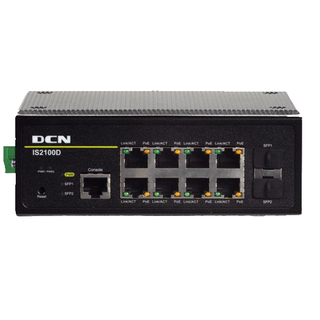 | IS2100D-2GF8TX-P | IS2100D-2GF8TX-P 卡軌式POE工業以太網交換機,(8個百兆電口+2個千兆SFP口) 全部電口支持最大30W (802.3at標準)供電,最大PoE供電功率180W |