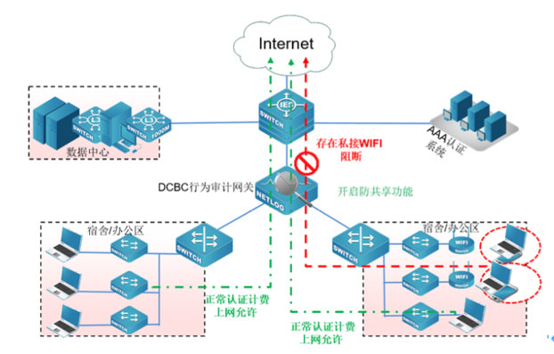 DCBC行為審計網關順利獲得先進的檢測技術發現共享代理上網的IP、用戶名、接入終端數、接入終端的操作系統個數,并在防共享上網的狀態界面顯示出來。DCBC行為審計網關可有效防范網絡中常見的各種共享代理,進行有效的管控,效果業內領先。