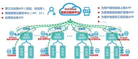 ●智能云管理平臺:部署在無線城域骨干網(一般指教育局機房)中,作為城域網統一管理平臺,統一管控,同時與智能云服務平臺承接相關云業務。