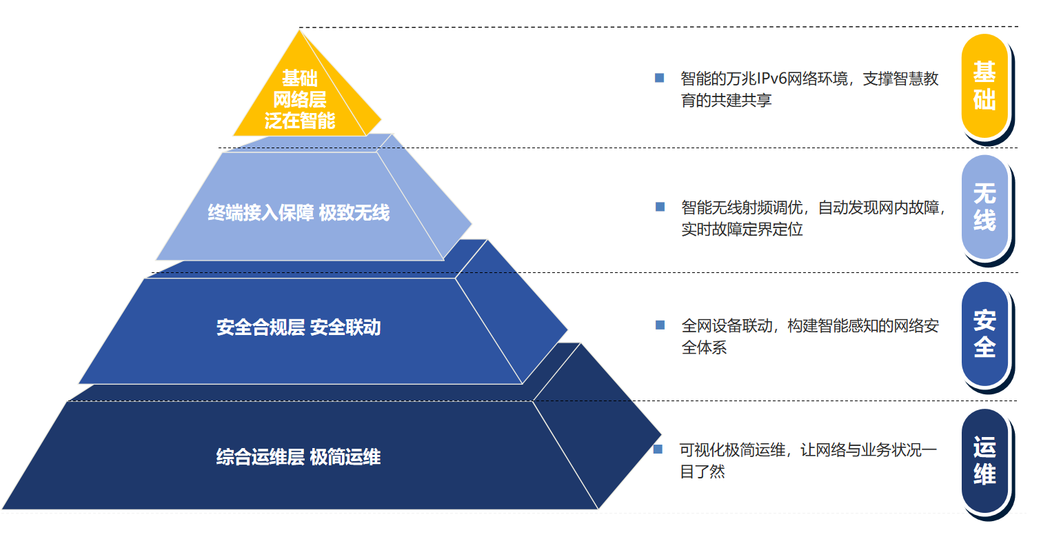 經(jīng)過系統(tǒng)化的業(yè)務(wù)和運(yùn)維管理平臺(tái)的梳理、擴(kuò)容后,西夏區(qū)教育城域網(wǎng)進(jìn)一步提升了網(wǎng)絡(luò)帶寬和穩(wěn)定性,可支持高速數(shù)據(jù)傳輸和大規(guī)模接入同時(shí)在線使用,同時(shí)提高了整體網(wǎng)絡(luò)性能和使用體驗(yàn);轄區(qū)內(nèi)實(shí)現(xiàn)有線/無線全覆蓋,切實(shí)支撐本地教育數(shù)字化轉(zhuǎn)型,進(jìn)一步滿足了所有師生在數(shù)字時(shí)代的綠色用網(wǎng)需求;進(jìn)一步提升了整體運(yùn)維效率,助力管理部門降低管理成本。